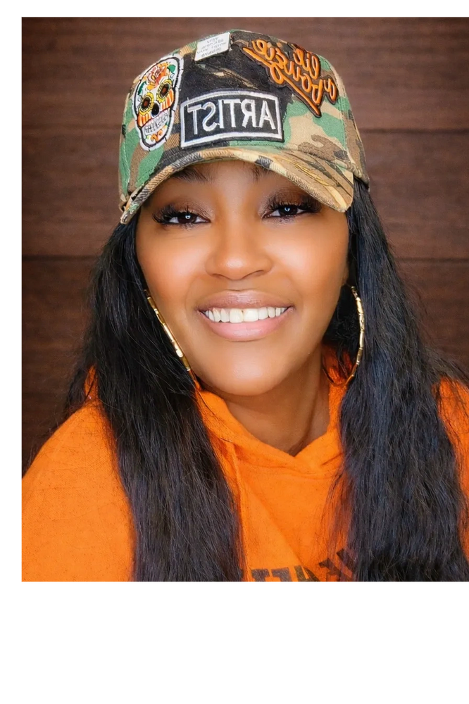 Every camouflage hat is freestyle-designed by the artist, layered with distressed details and bold elements that make each piece completely one-of-one. No two hats are ever the same — and none are recreated once sold.